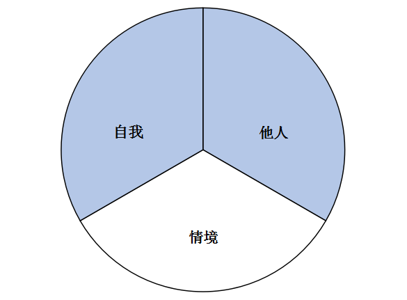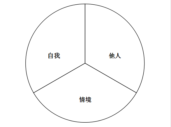 情境、自我以及他人共同构成我们的生存模型。当自我、他人和情境三者得到和谐互动的时,方能达到表里一致的生存姿态。